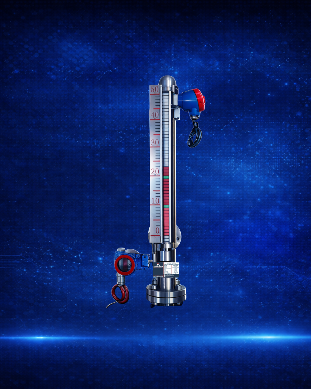 A Garrafa Indicadora de Nível é um instrumento de medição visual projetado para monitoramento contínuo do nível de líquidos em tanques e vasos de processo. Seu sistema permite leitura clara, precisa e imediata, proporcionando maior controle operacional e segurança no processo industrial.