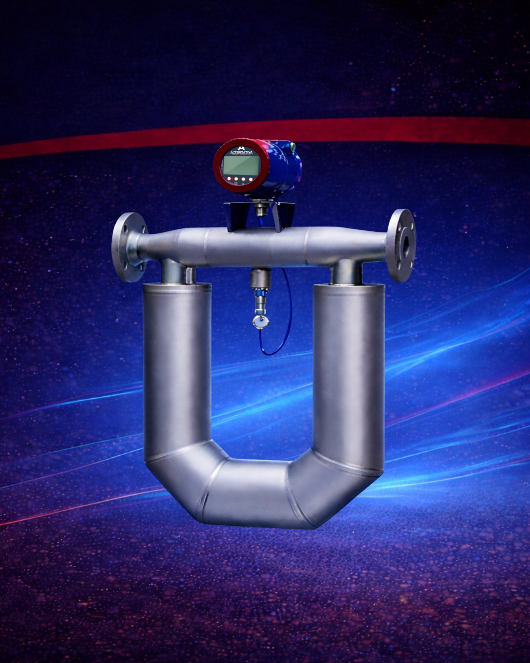 O medidor de vazão Coriolis é um instrumento de alta precisão utilizado para medir vazão mássica direta, além de fornecer dados simultâneos de densidade e temperatura do fluido.
